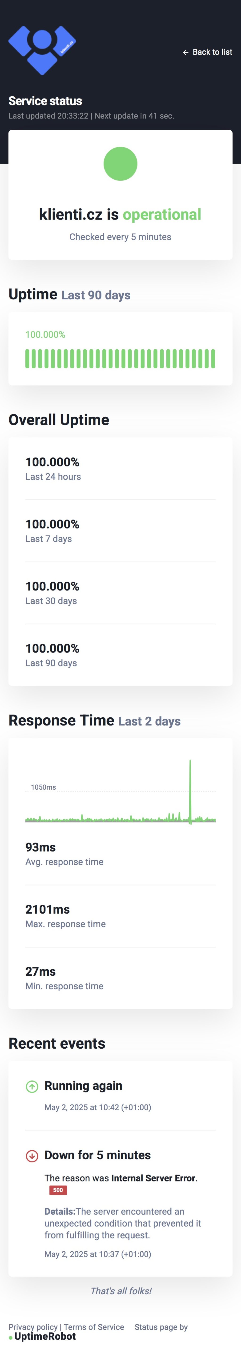 Stav serveru za posledních 90 dní: https://stats.uptimerobot.com/MRzhupQR4d/782941742